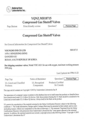 UL Compressed Gas Shutoff Valves