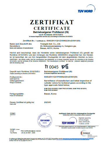 TPED Certificate (TUV NORD)
